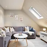 Top-Floor Apartment W / flott utsikt består av en balkong med arbeidsbord og moderne bekvemmeligheter som en flatskjerm-TV med satellittkanaler. Røykdetektorer er en del av de innebygde sikkerhetsfasilitetene. Eiendommen har 2 soverom. For ekstra bekvemmelighet er det 1 bad i denne leiligheten. Videre er en hårføner og badehåndklær tilgjengelig.